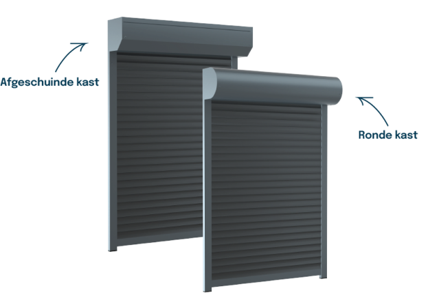 We hebben twee soorten rolluik omkastingen. Afgeschuind en rond. De keuze tussen een afgeschuinde kast of een ronde kast hangt volledig af van je persoonlijke voorkeur.
