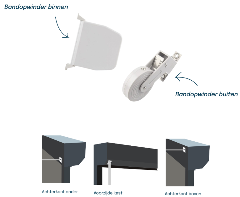 Als je kiest voor handbediening, heb je de keuze uit twee opties. Dit zijn bandopwinder binnen en bandopwinder buiten.